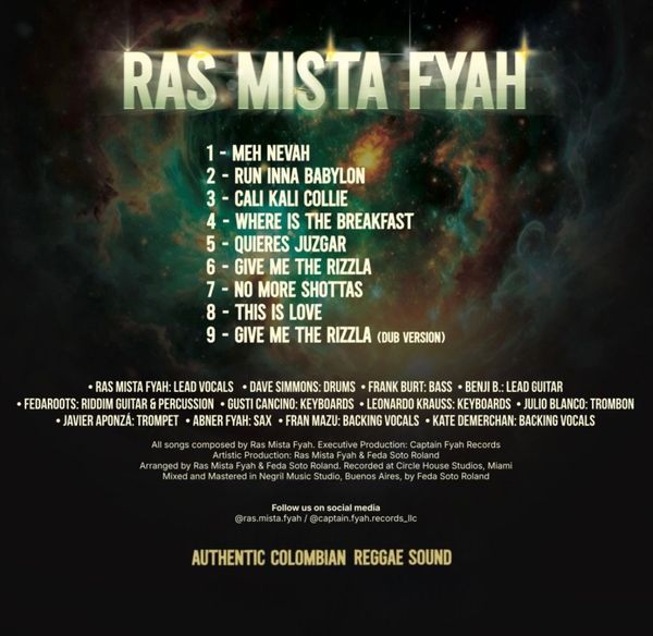 Ras.Mista.Fyah is an artist who has enjoyed a great life, dedicated to Music and travel. Originally from Bogota, Colombia Ras.Mista.Fyah came to America in 2013 and started his record studio “Captain Fyah Records LLC” in 2017. Now based in Miami Florida. Ras.Mista.Fyah continues to tour and make music that all can enjoy uniting English, Spanish, Portuguese, and Patios. Spreading his message of love, unity & Perserverance to the people.